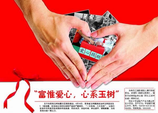 為支援青海玉樹地震地區(qū)的災后重建工作,幫助災區(qū)群眾盡快恢復正常生產(chǎn)生活,佛山富惟日前開展以“捐出一份愛心,重建一個家園”為主題的愛心捐款活動。