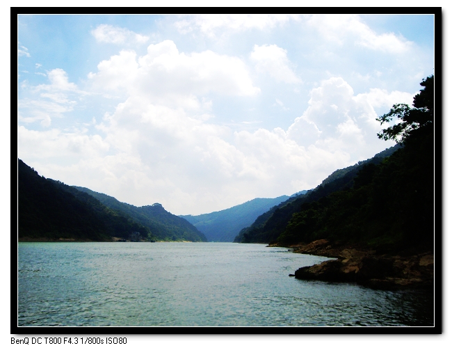 我們各自分好小組,穿好救生衣,戴上安全頭盔,拿著水瓢上船的時候,放眼望去,都是綠油油的頭(盔),紅彤彤的戰(zhàn)衣(救生衣),手持水瓢,活像四五十年代的紅色游擊隊。然后,驚險而又刺激的旅程就開始了。全程2.8公里多,有20多個落差位的水道上,都是不絕于耳的“哇——哇——”叫聲,其叫聲的凄慘程度不亞于鐵達尼號上的落水者。而在水面平靜的地方,就成了水槍、水瓢、甚至頭盔的“用武之地”。大家充分利用了水瓢的“靈活性”、水槍的“遠程性”、頭盔的大面積“殺傷性”,興高采烈地打起了水戰(zhàn)。其混亂激烈程度不亞于美國攻打伊拉克首都巴格達時的情形。一路上,尖叫、顛簸,然后馬上進入作戰(zhàn)狀態(tài),混戰(zhàn)后,又再重新盡情地尖叫、發(fā)泄。直到最后達到終點時,個個都已經(jīng)渾身濕透,筋疲力盡,但卻又意猶未盡,直到在回來的路上,還在為你應(yīng)如何如何,我該如何如何爭論不休。